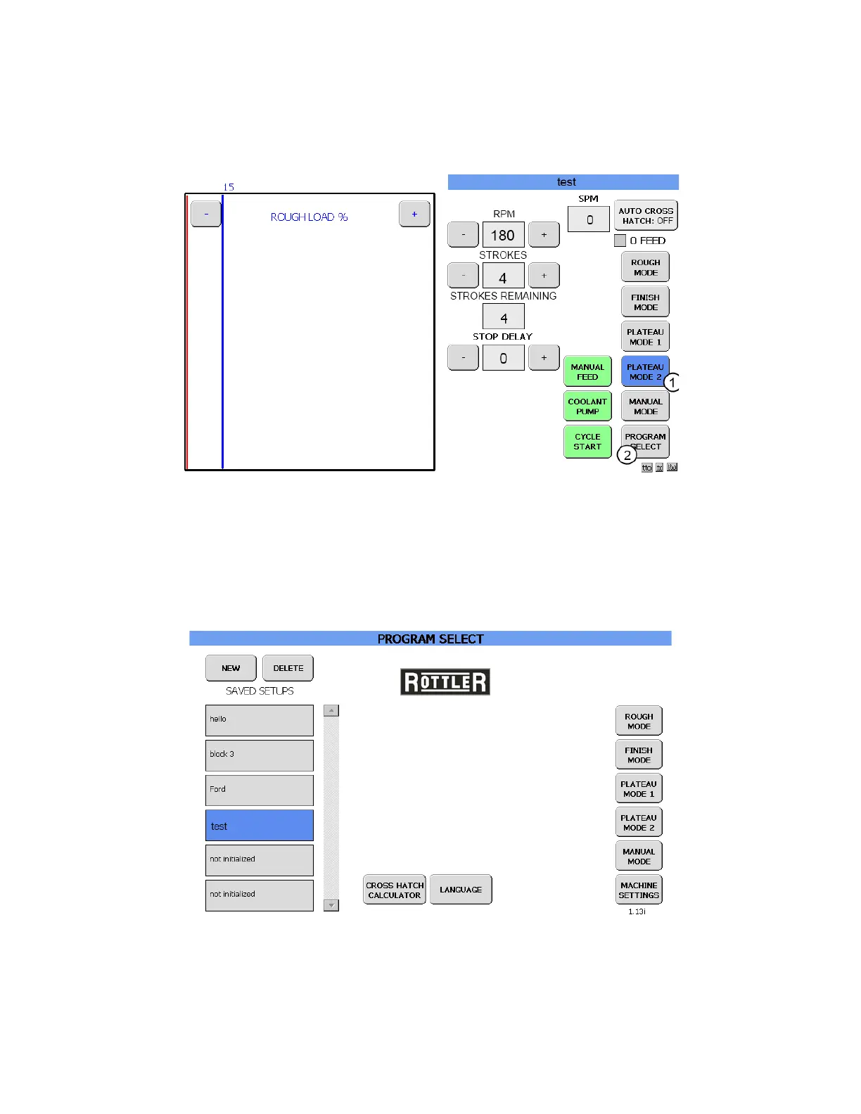 Touch the PROGRAM SELECT button (2) to take you back to the PROGRAM SELECT screen. If the