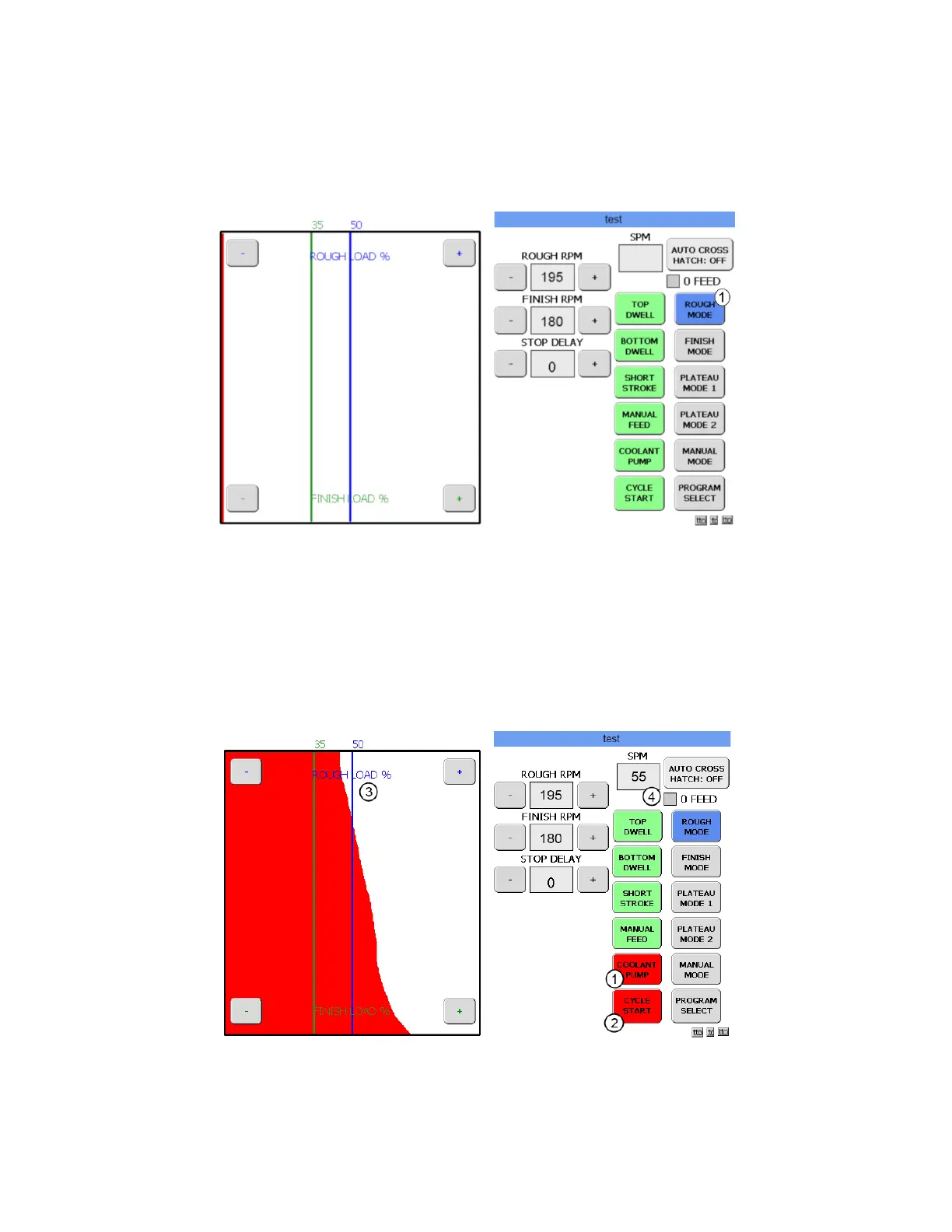 stones until the preset ROUGH LOAD is reached. The red line on the load graph will move towards the
