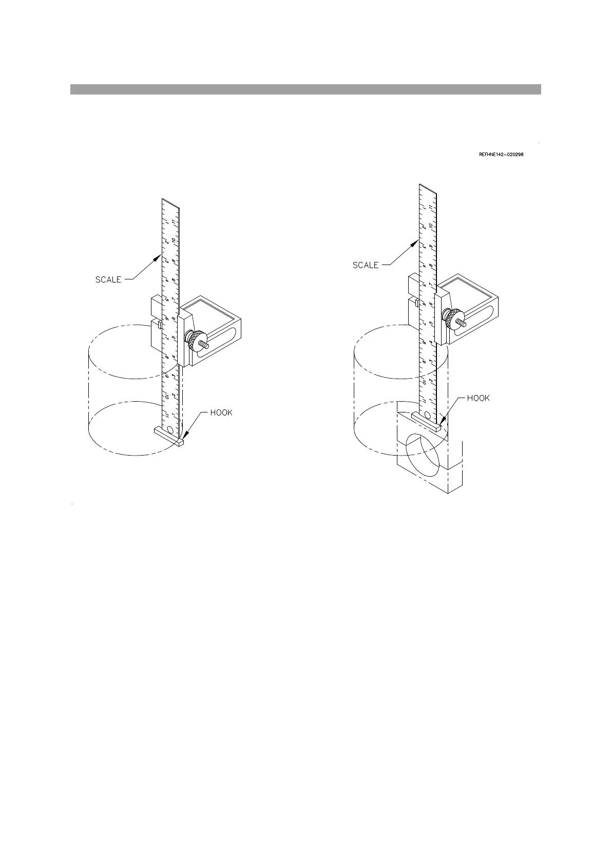 2. Lower scale to touch upper surface of hook on deepest point of cylinder wall.