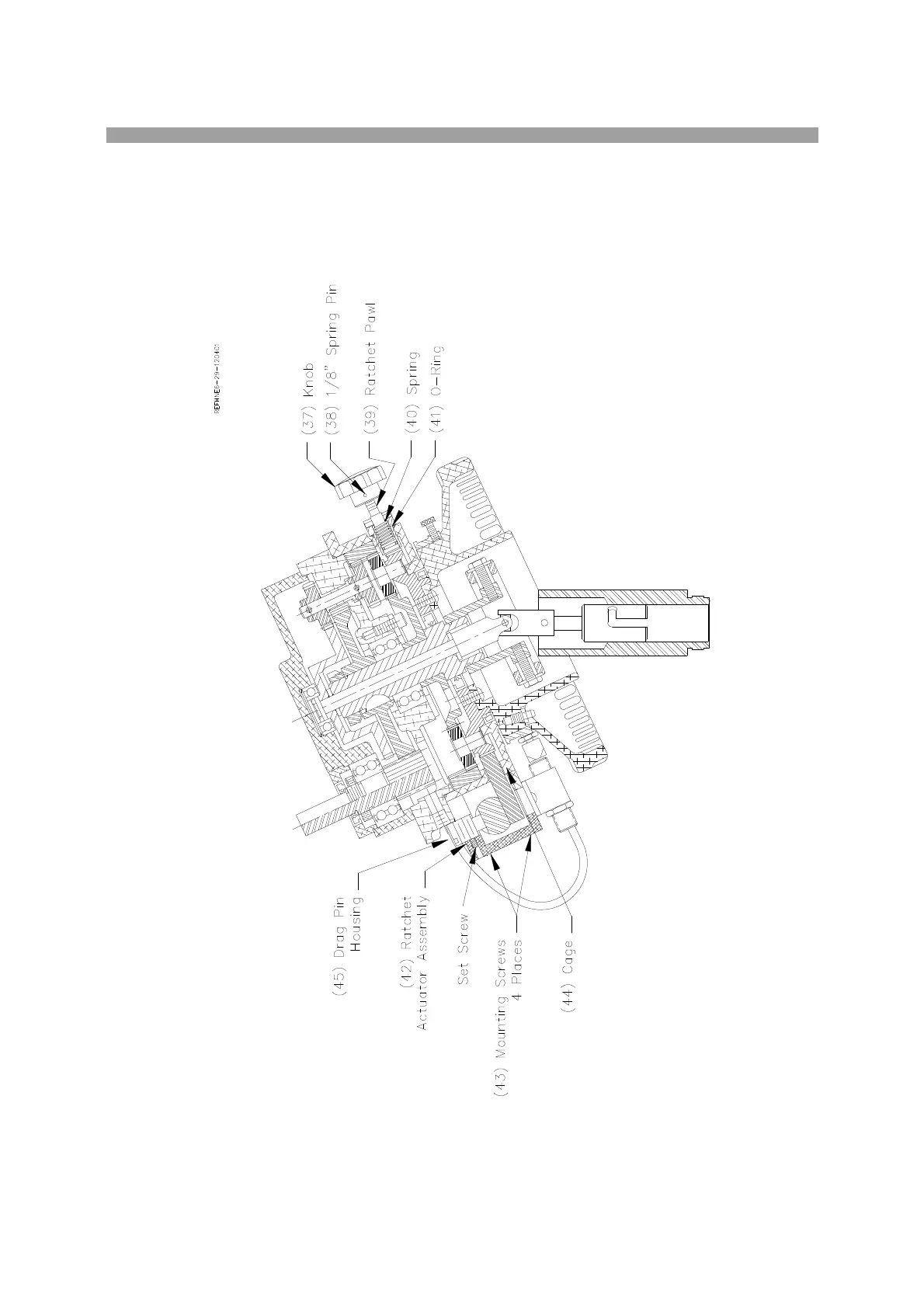 Assembly to the ratchet gear cage (44). Disassemble Ratchet Actuator Assembly. Loosen drag pin