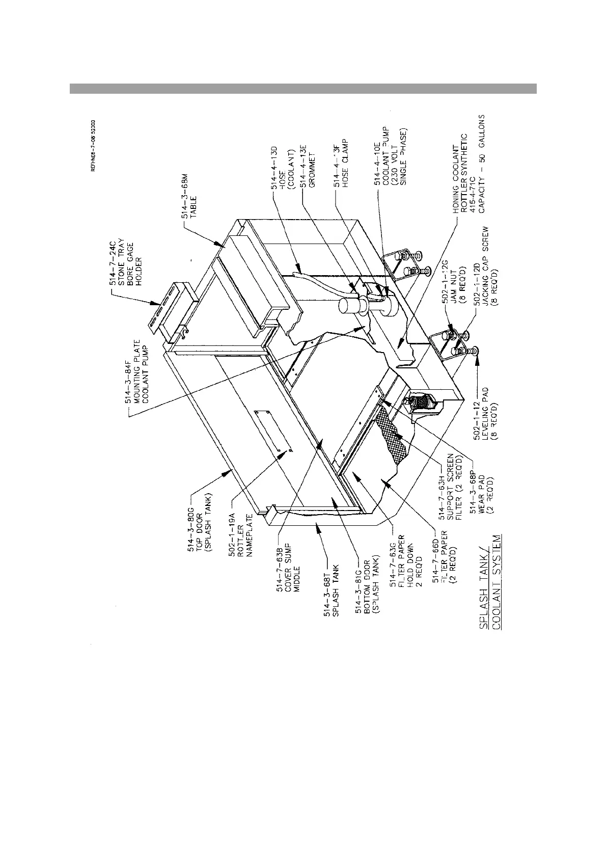 Rottler HP6A - Splash Tank; Coolant System