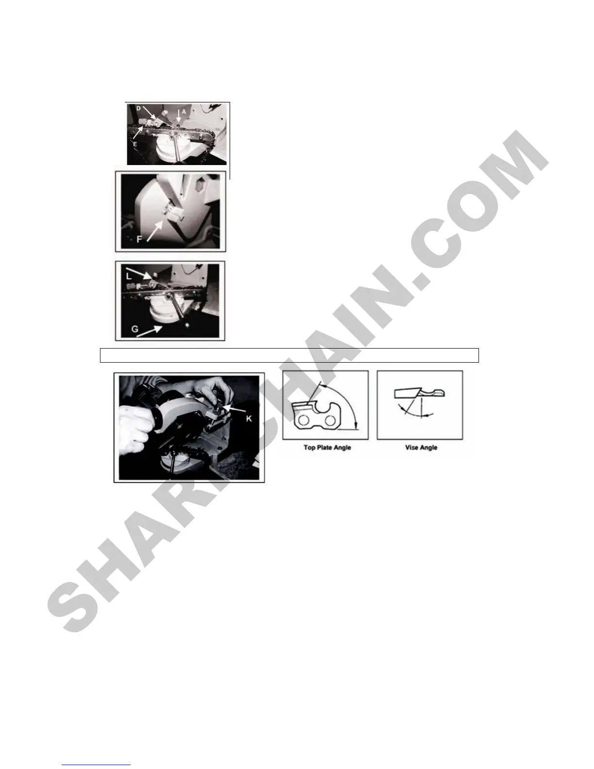 pressing the disc on the chain, Adjust the pressure as necessary. Mark the start of grinding