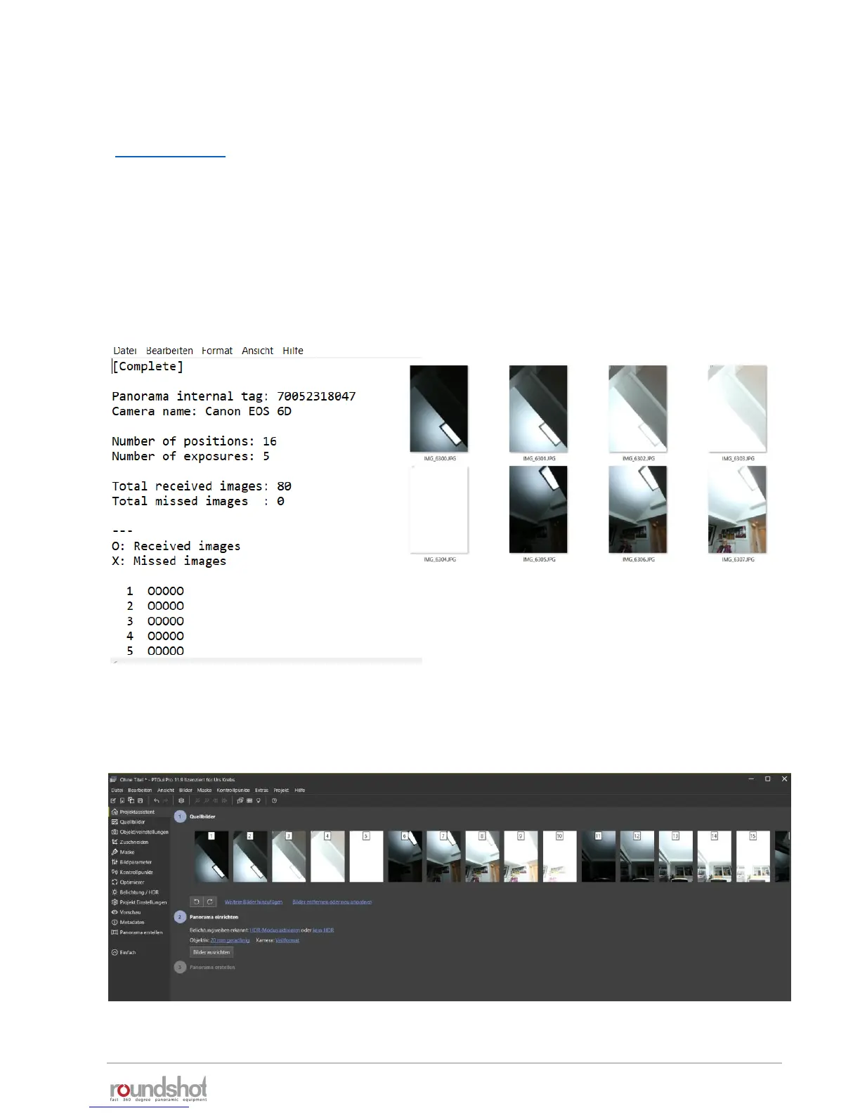 The images can be stitched using any stitching software. We recommend using PTGUI