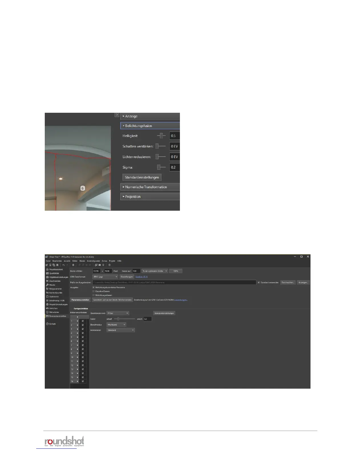 • Modification of image fusion parameters (lightness, shadows, lights, sigma)