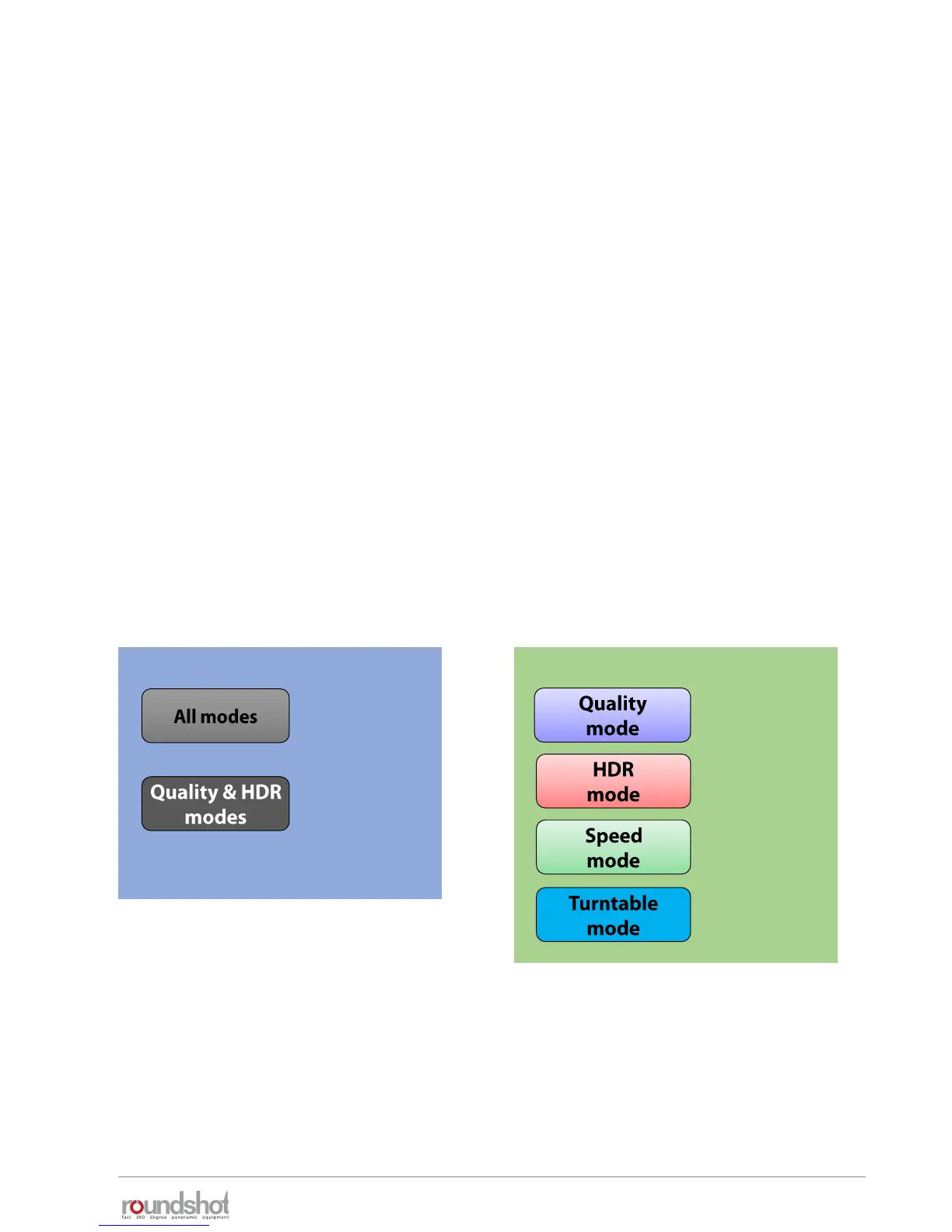 “Quality”, “speed” and “HDR” modes, are used to capture panoramic images. The camera is