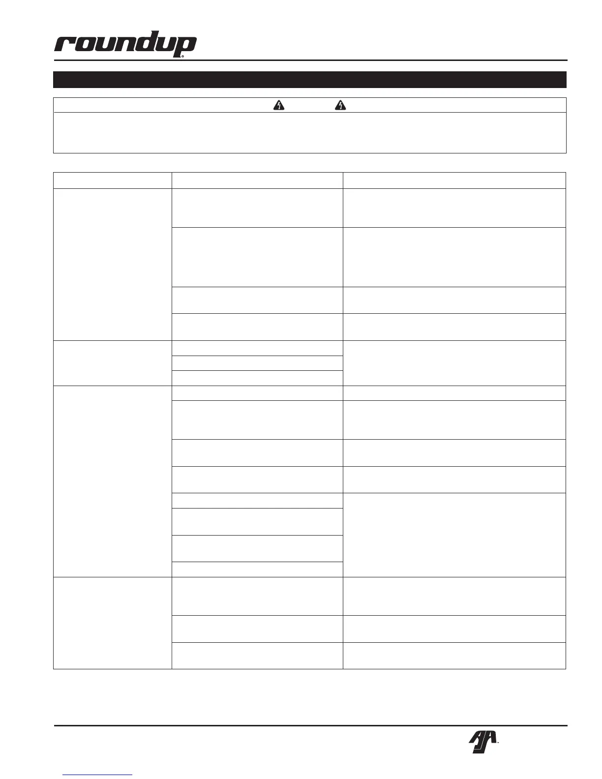 Problem Possible Cause Corrective Action