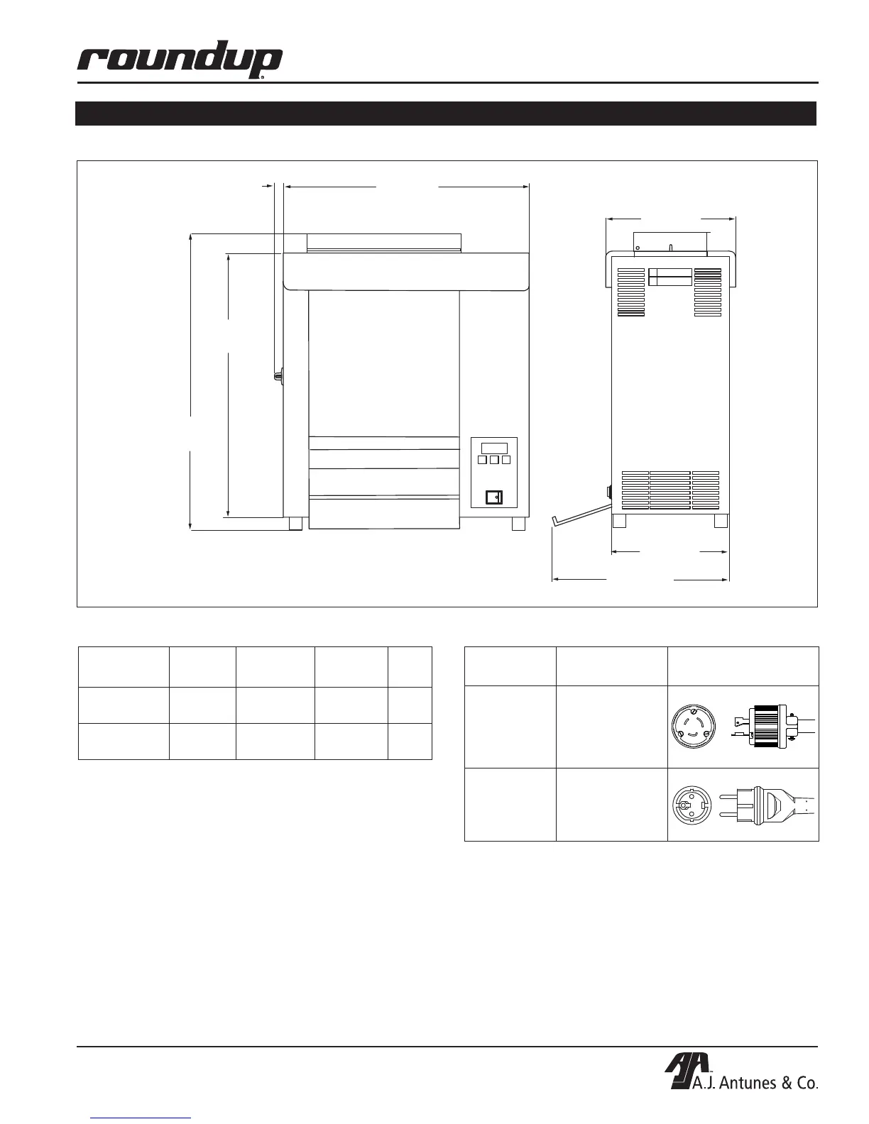 Roundup VCT-2000 - Specifications; Dimensions; Electrical Specifications at Listed Voltages; Electrical Cord & Plug Configurations