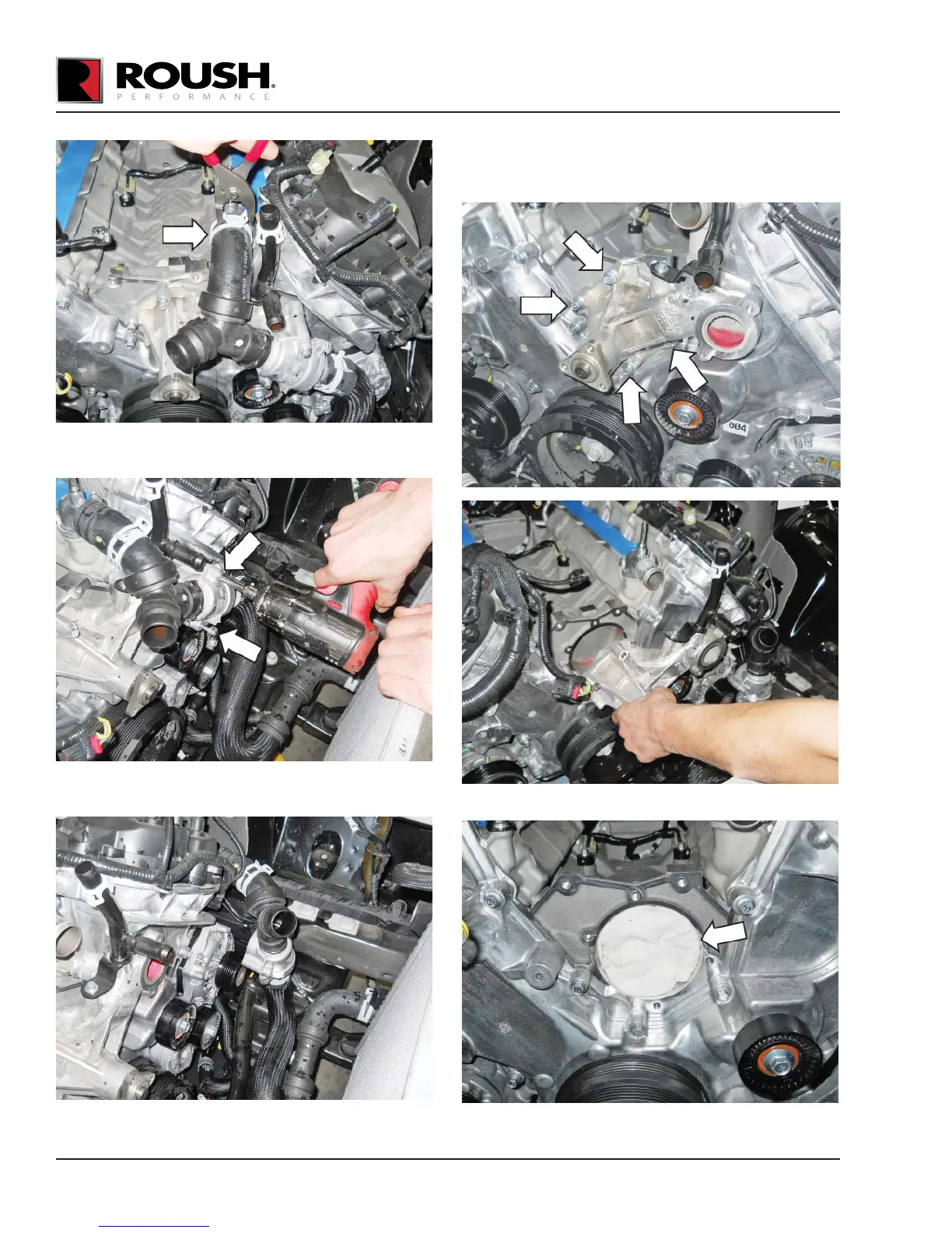 62. Remove the four (4) water pump mounting bolts