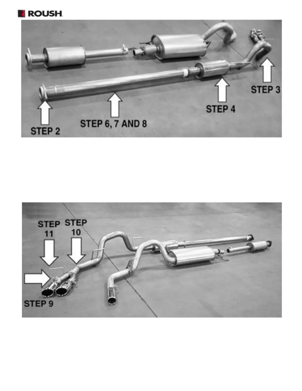8. Install one (1) 2.5" clamp onto each of the exhaust tips and slide the tips onto the ends of the Y-pipe. Position