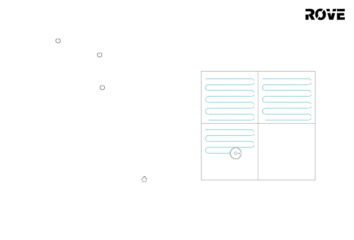 Note: If the device cannot find the charging base, it will return to its starting position.