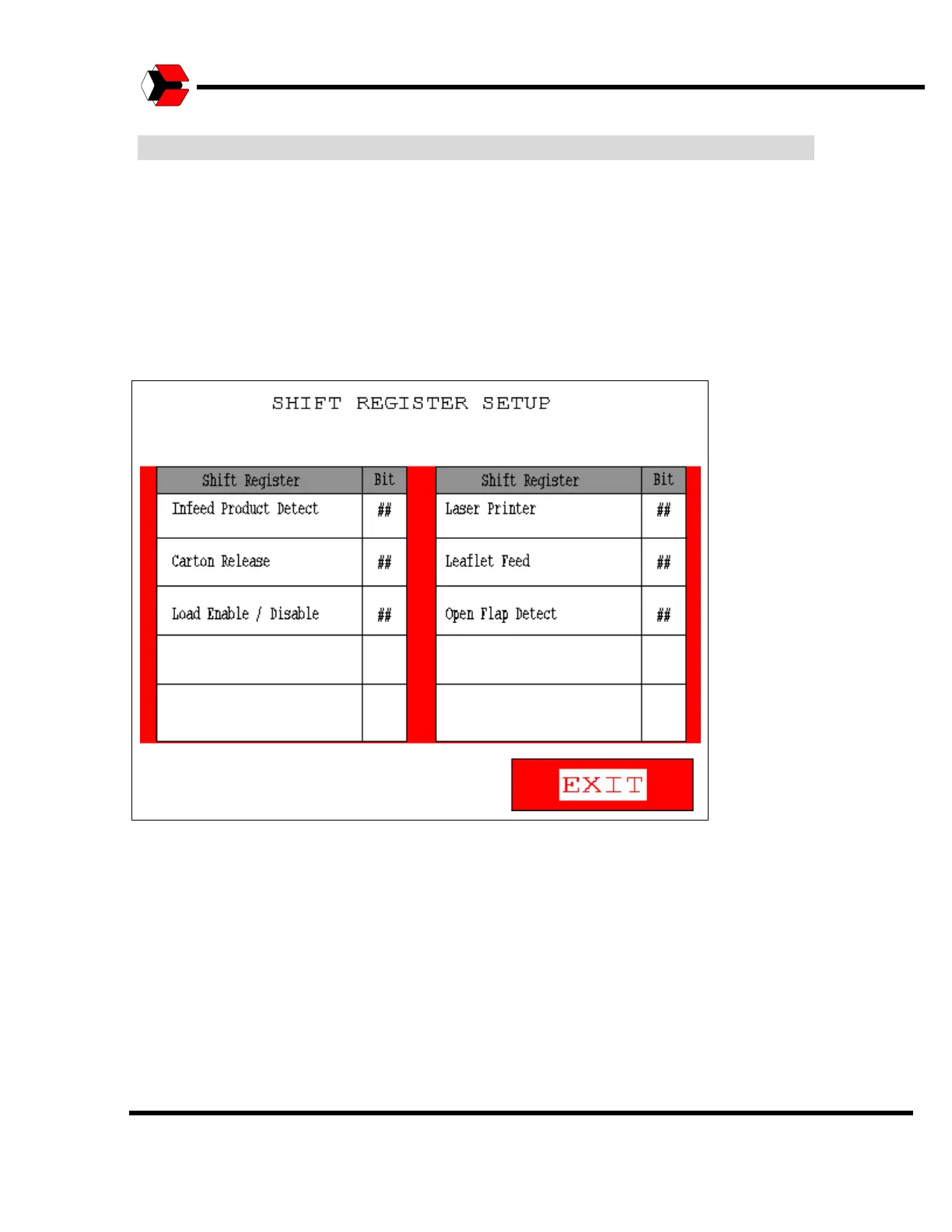 The Shift Register Setup screen is accessed from the Configuration screen.