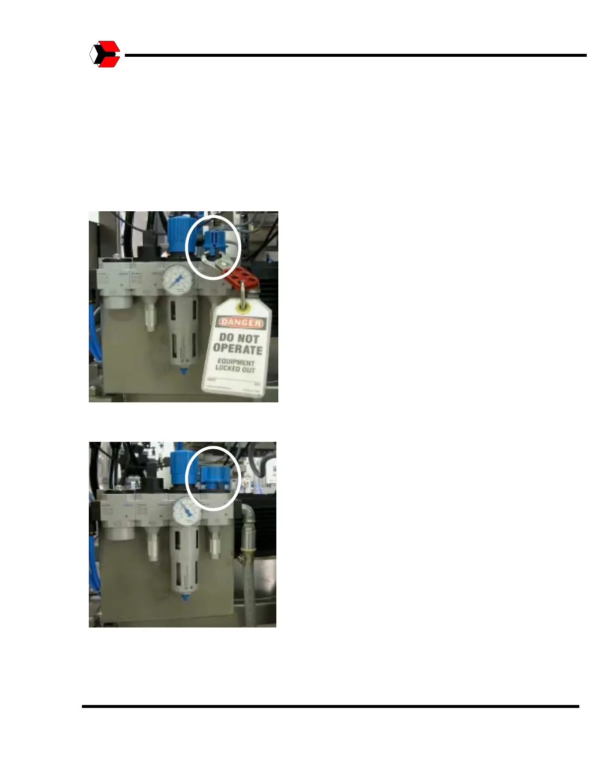 The Air Disconnect Handle controls the flow of air to the packing machine. Push