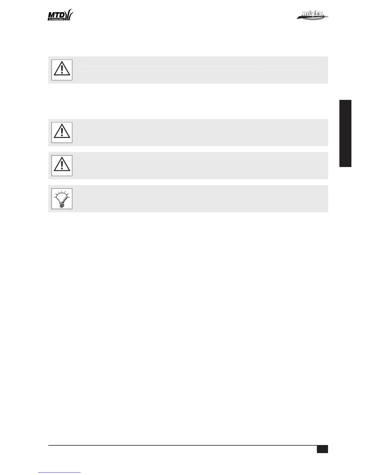 Mit diesem Symbol wird vor Beschädigungen des Mähers oder möglichen Garantieverlusten gewarnt.