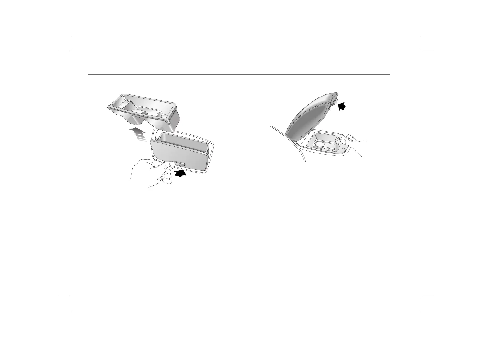 Lift the release catch (arrowed) to open the lid. The cubby box is