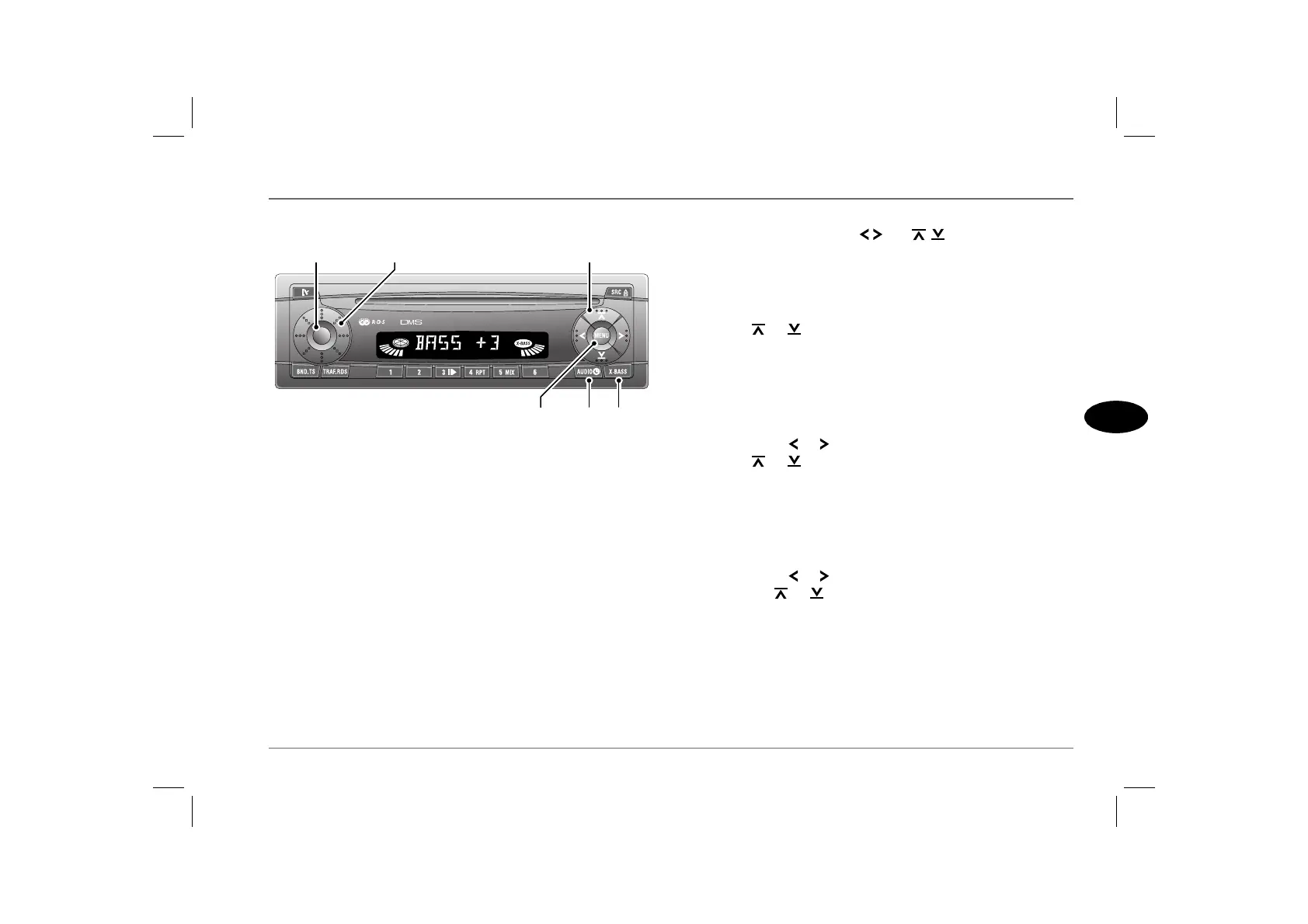 1. Press the AUDIO control - (‘BASS’ shows in the display).