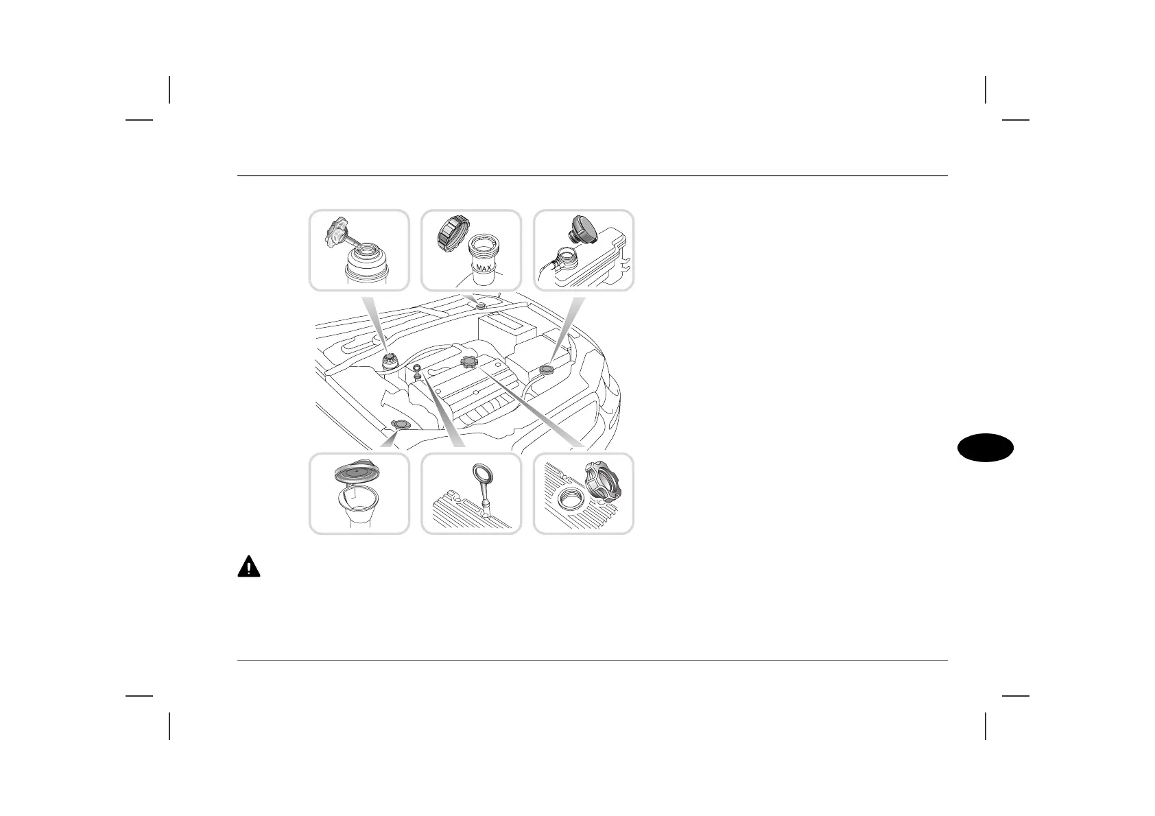4. Engine oil filler (yellow cap)