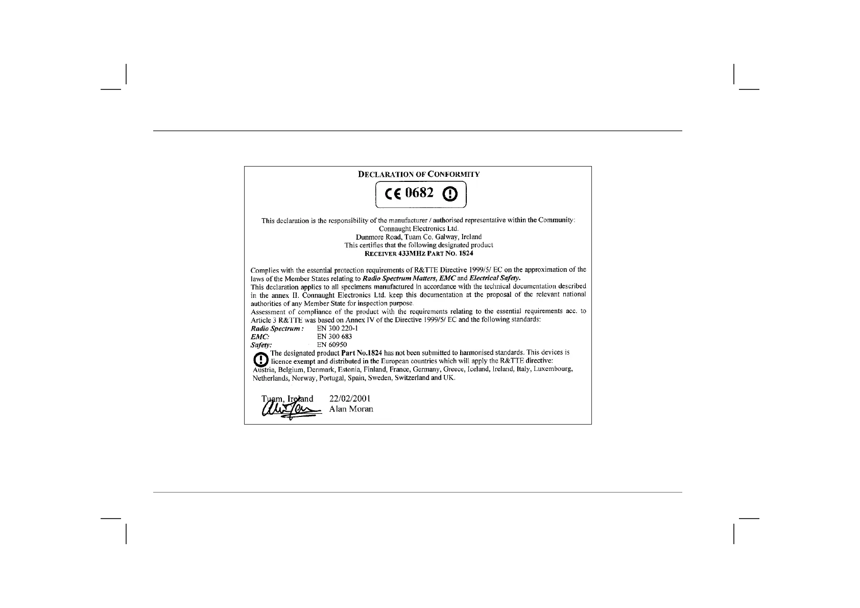 Rover 75 Tourer - Declaration of Conformity