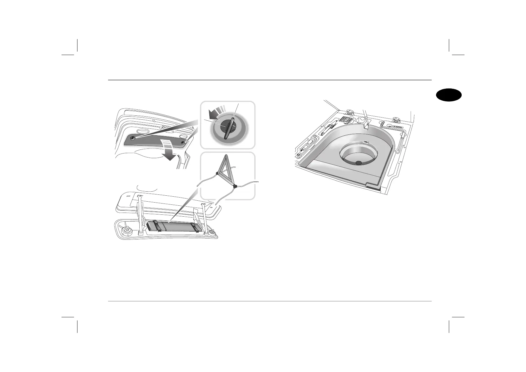 underfloor storage tray. A deeper, circular storage compartment is