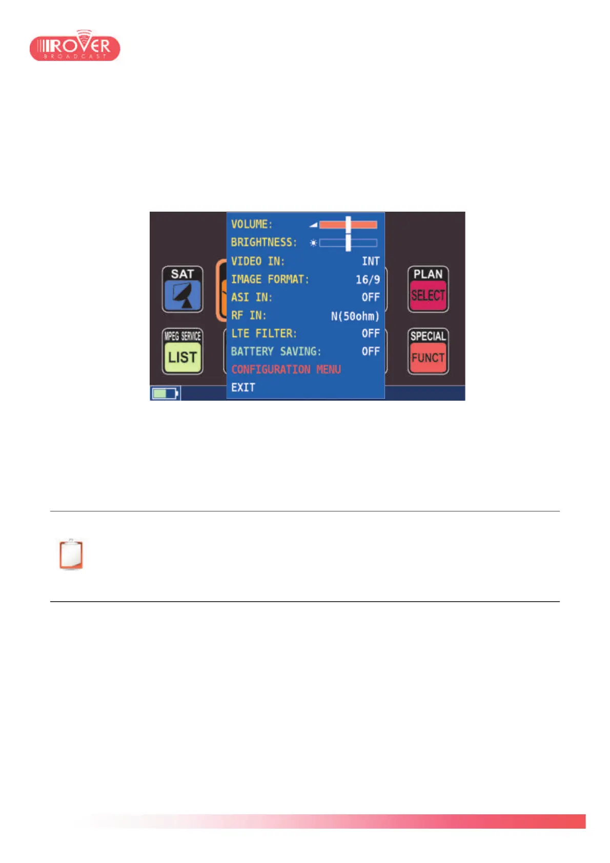 Pressing the CONFIG button on the front panel keyboard will display the basic settings menu.