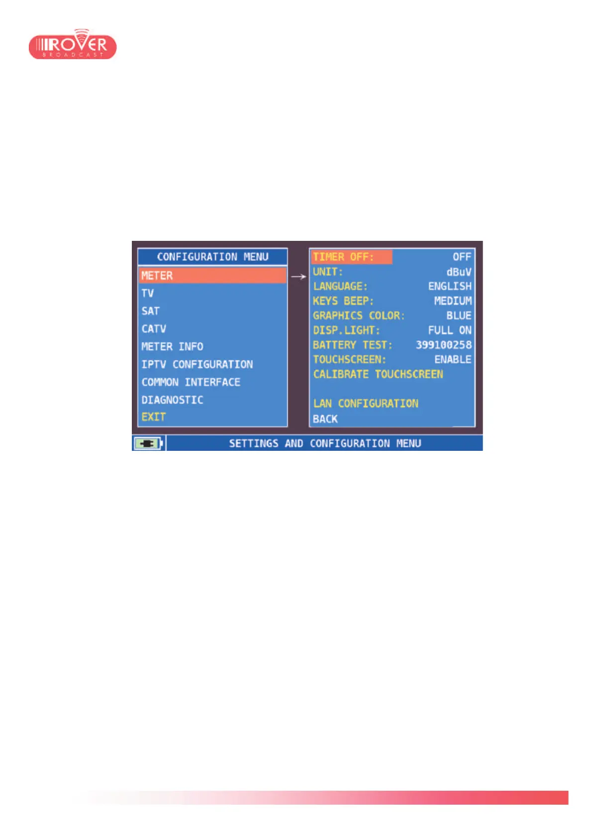 Selecting CONFIGURATION MENU from the basic settings screen, the complete meter’s