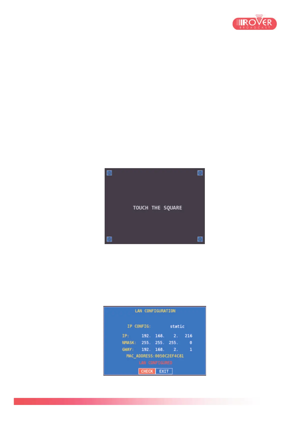 CALIBRATE TOUCHSCREEN: this option activates the touch screen calibration function.