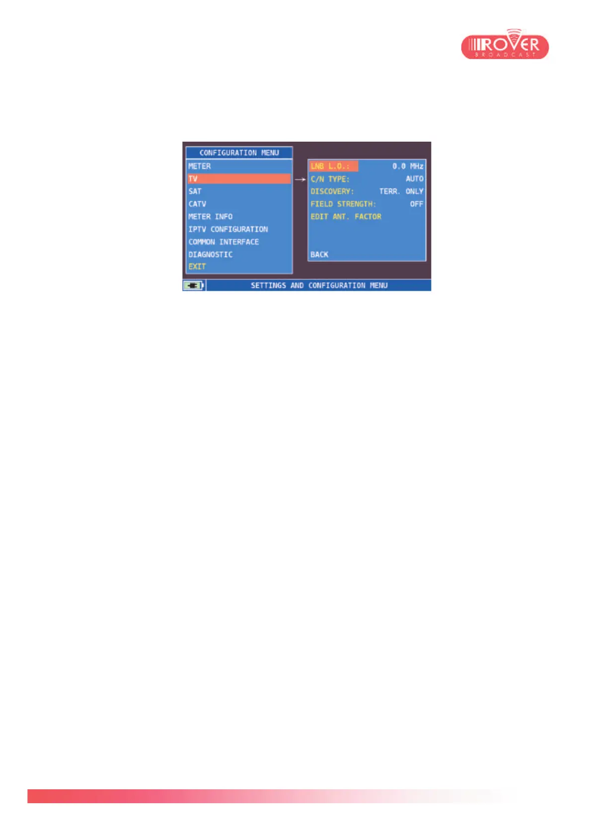 Selecting TV from the left menu, will open the TV parameters configuration screen: