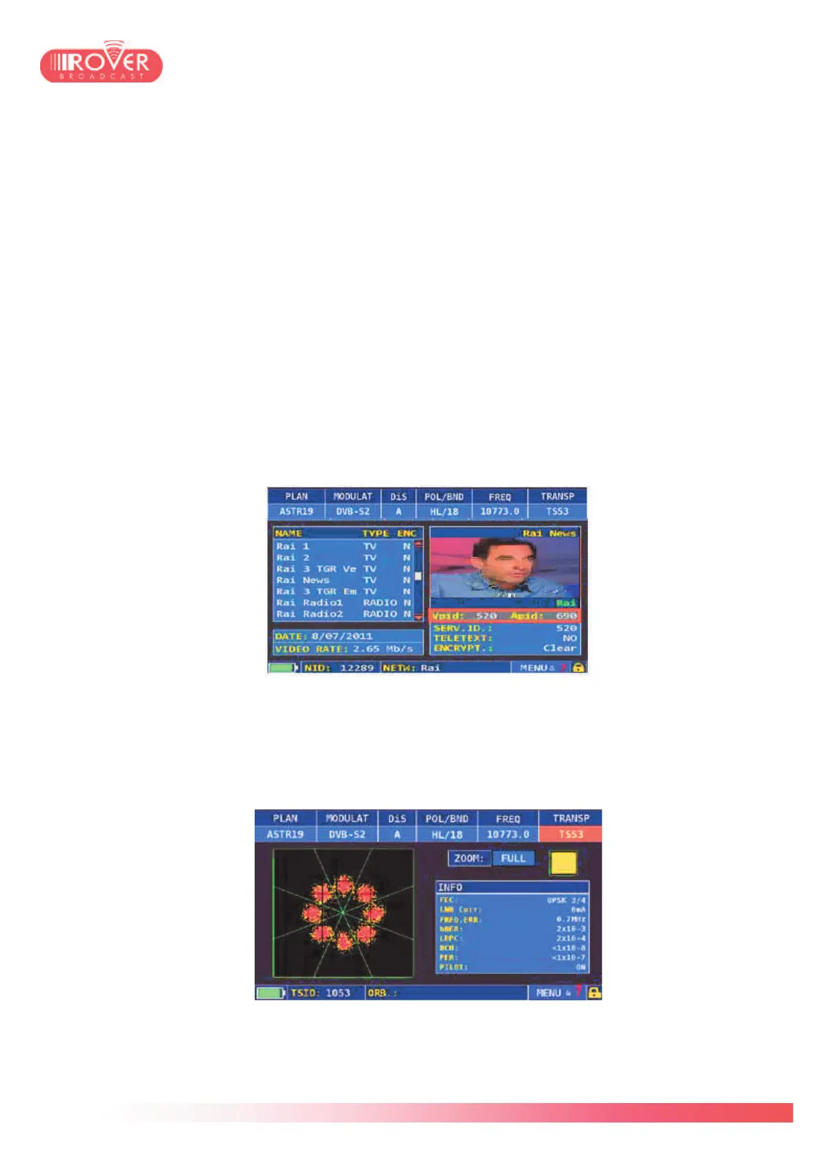 In this second screen the meter visualizes the constellation diagram and the modulation