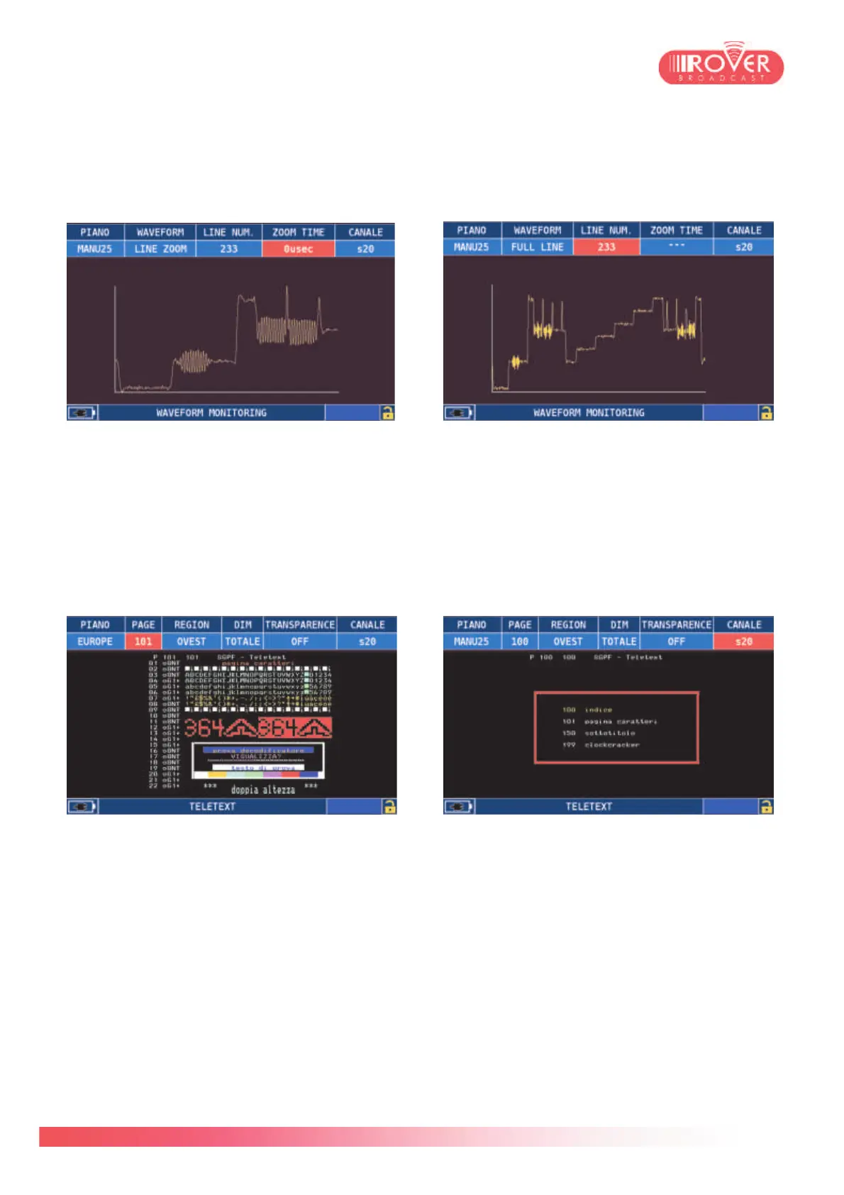 In the Waveform monitor page, the user can see in a more detailed way each line