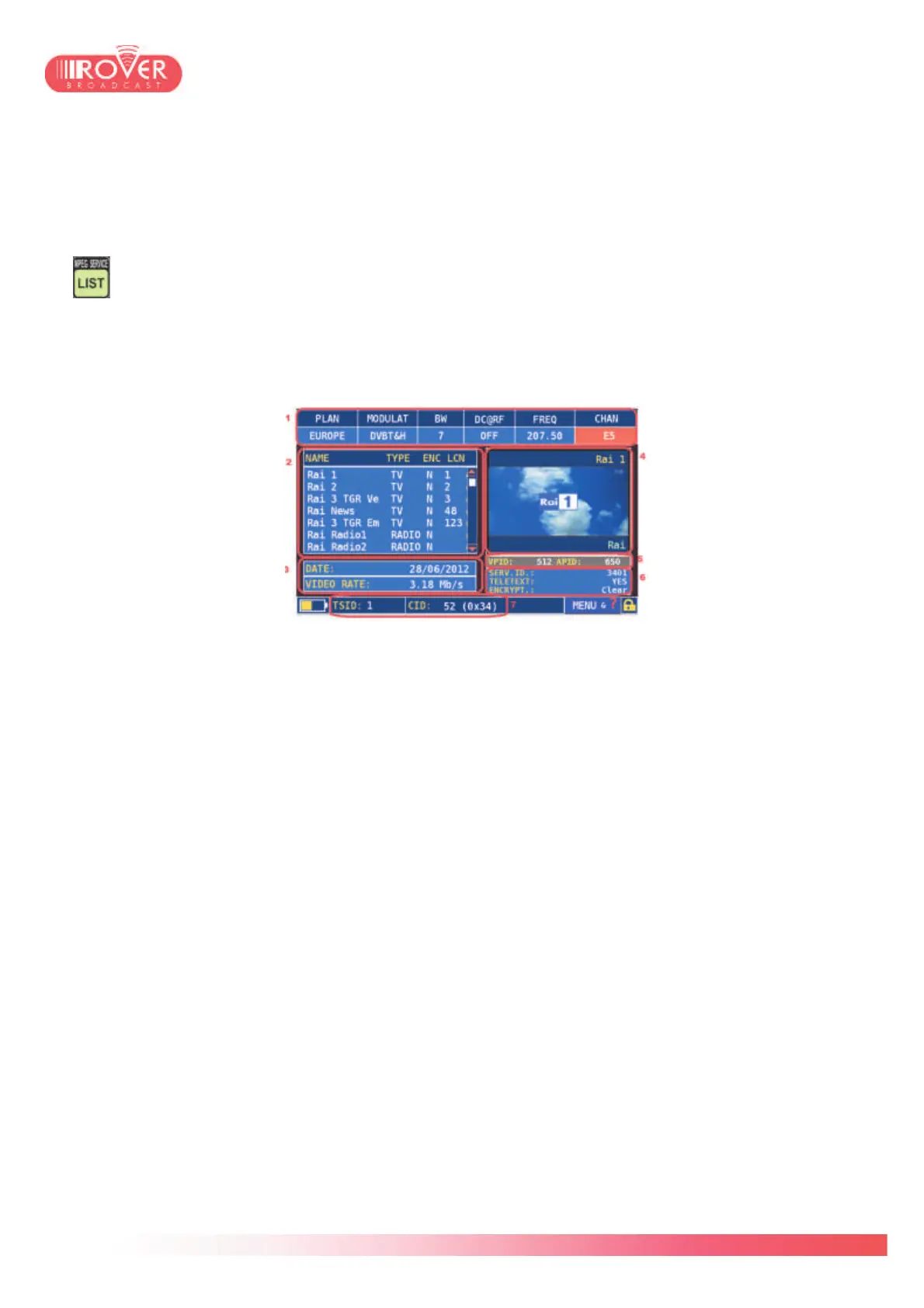 2. Services List: once the signal is locked and demodulated, the Decoder starts scanning the