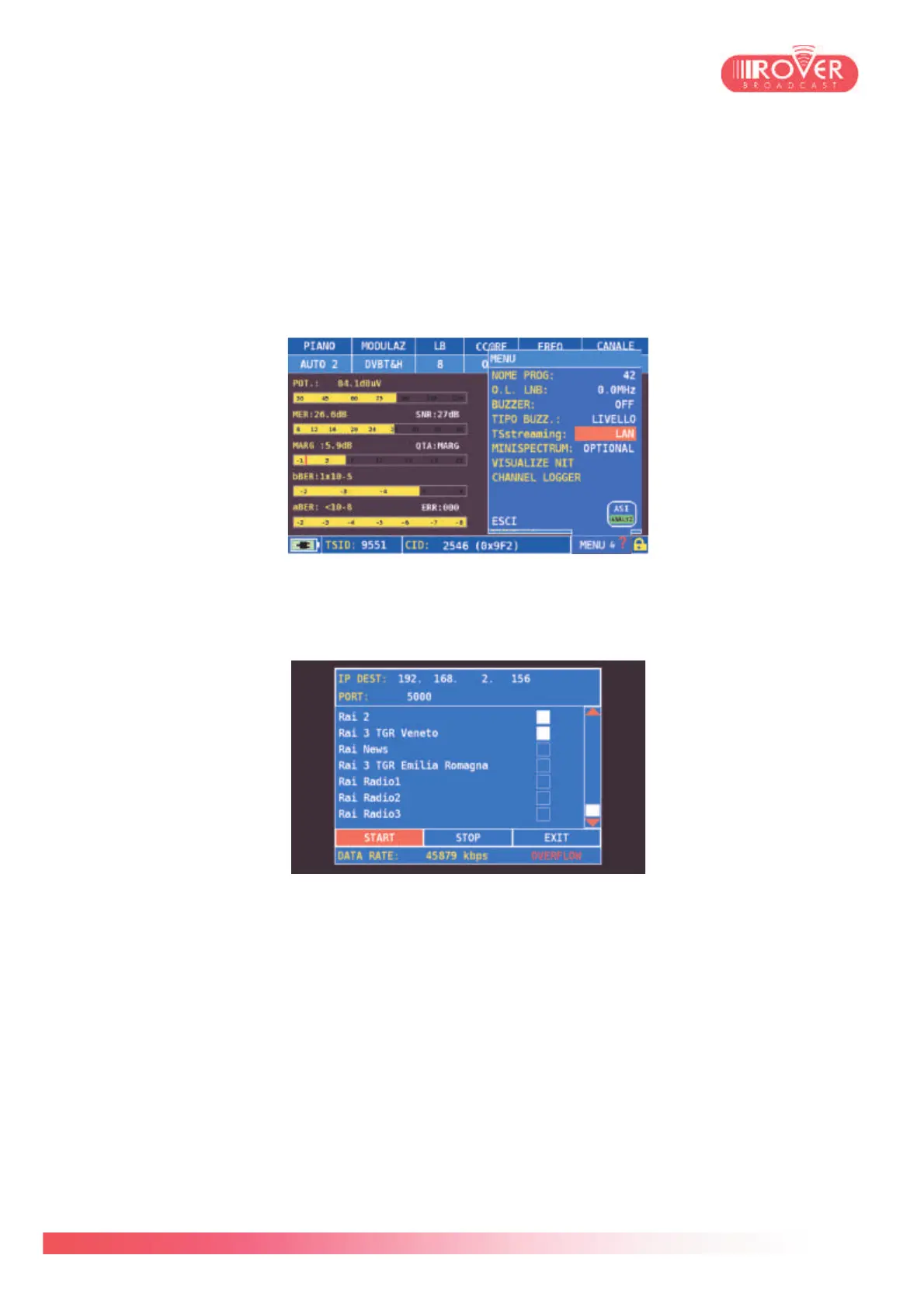 Pressing START will activate the IP transport to the configured IP address through an UDP