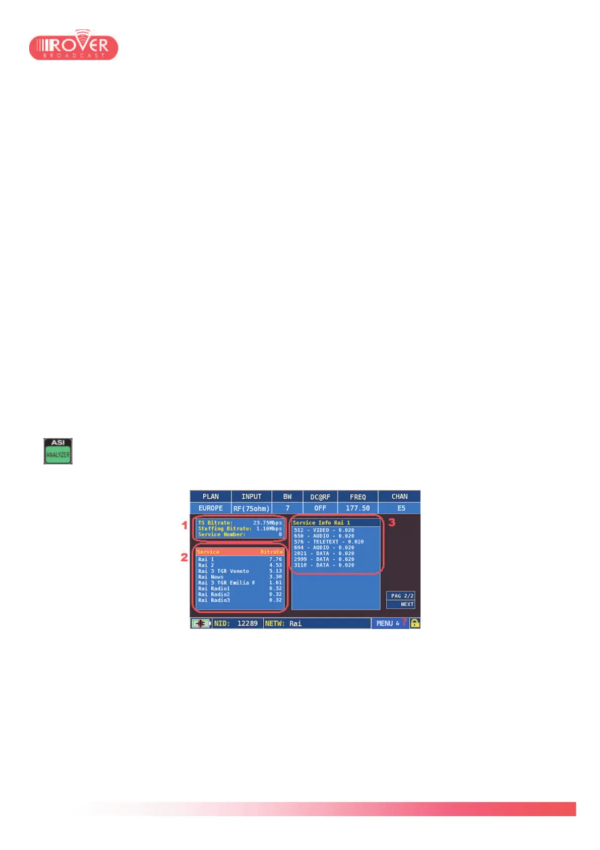 composing PIDs with stream_type information and bitrate. Scrolling the services list (2) will