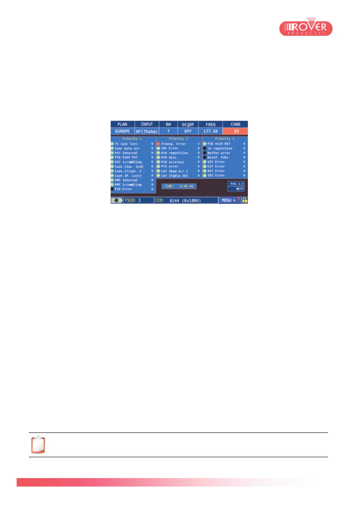 dedicated to the TR101290 monitoring. The following screen will appear: