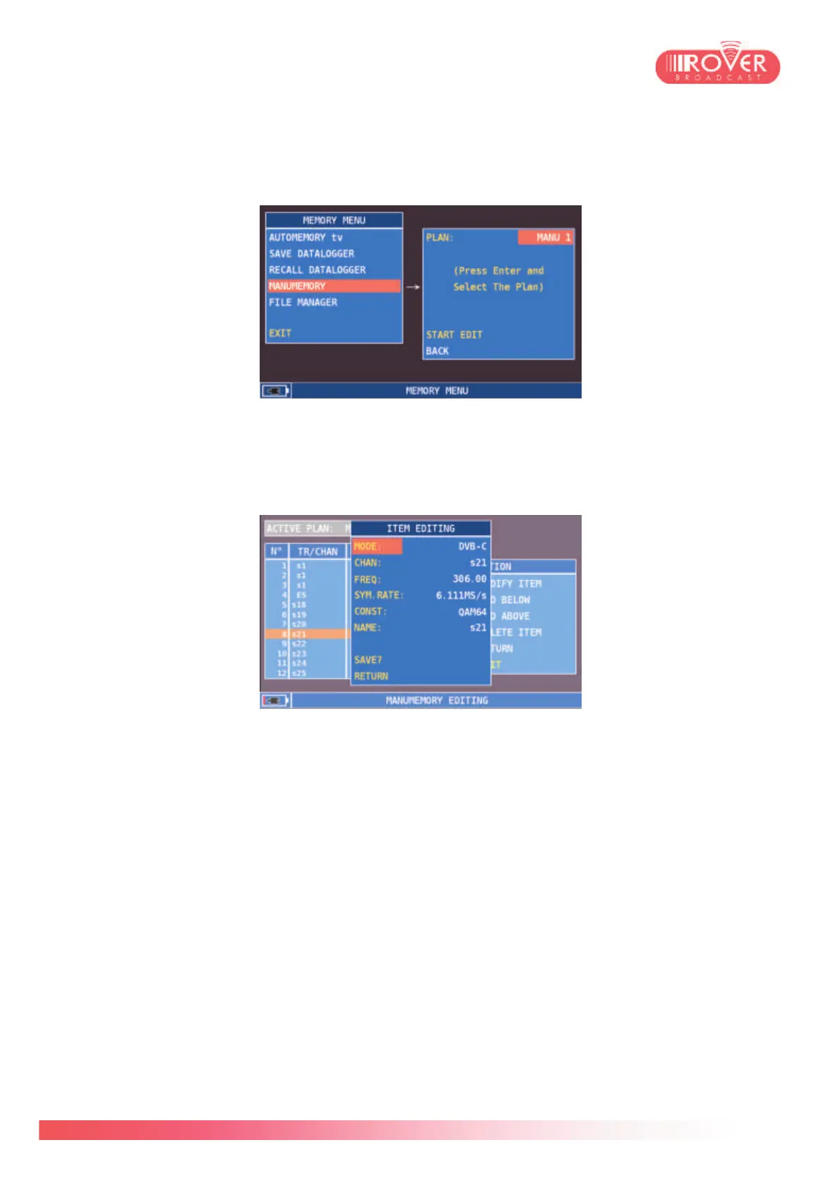 tuning parameters of the channel of interest. Again, selecting SAVE, will store the channel
