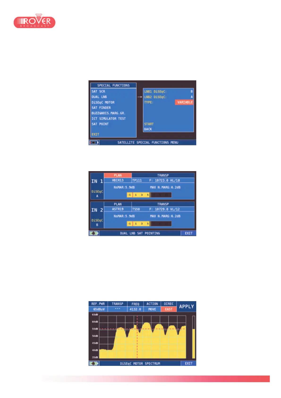 DUAL LNB: This function enables the user to verify the installation of a Dual LNB dish, that