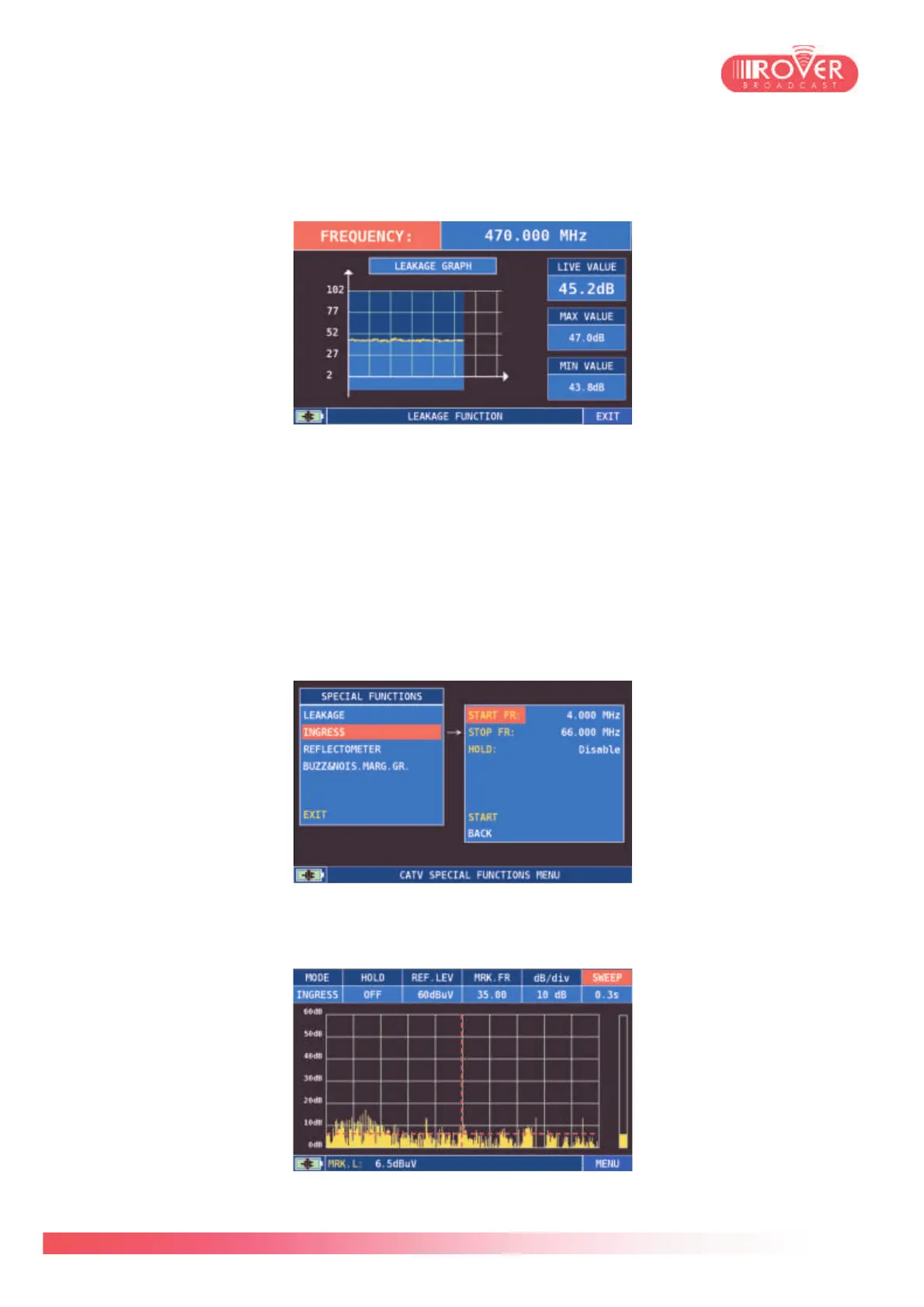 INGRESS (CATV): Ingress test is typical of the cable TV distribution systems. Its aim is to verify