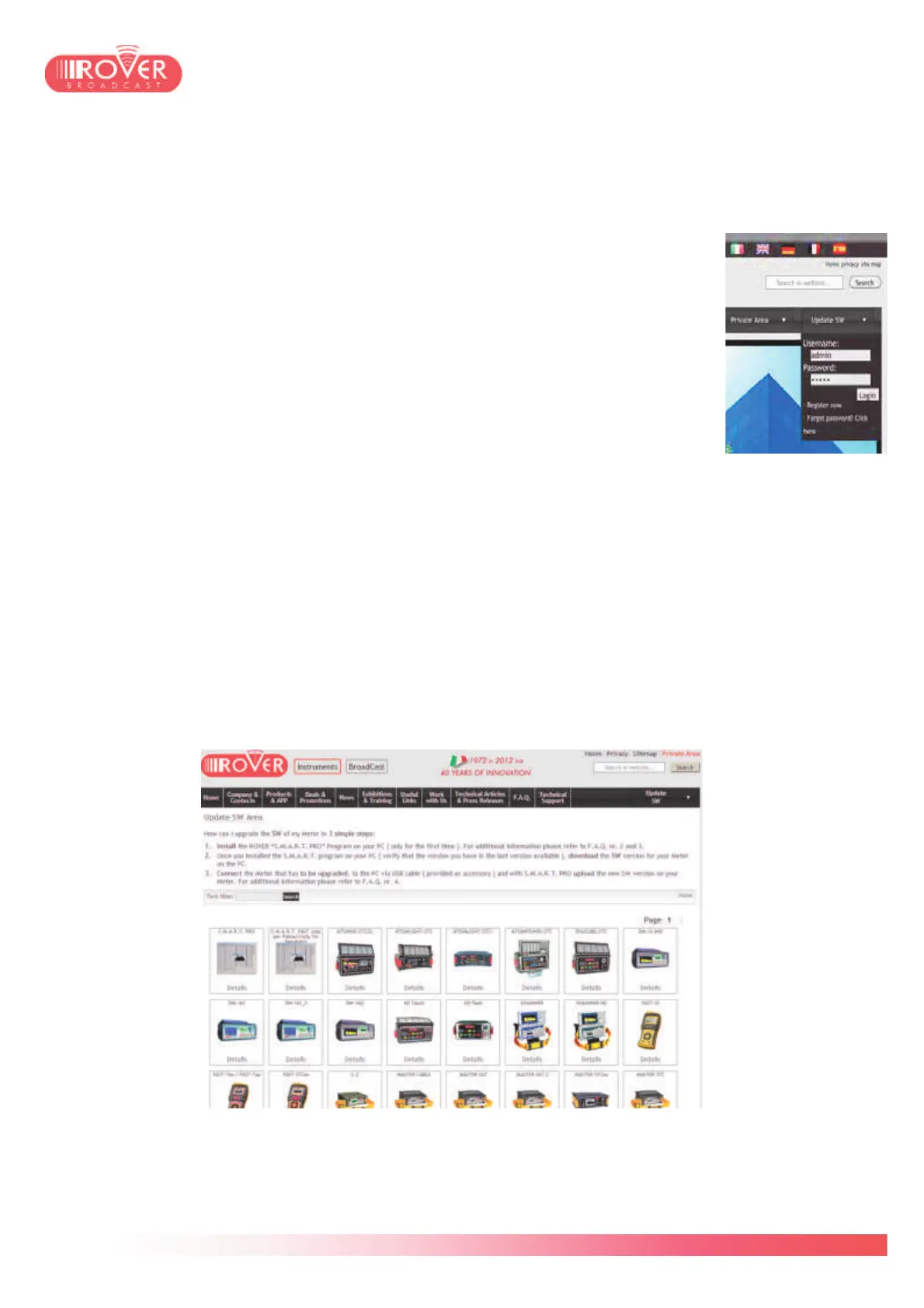 website www.roverinstruments.com registering in the Update SW area.