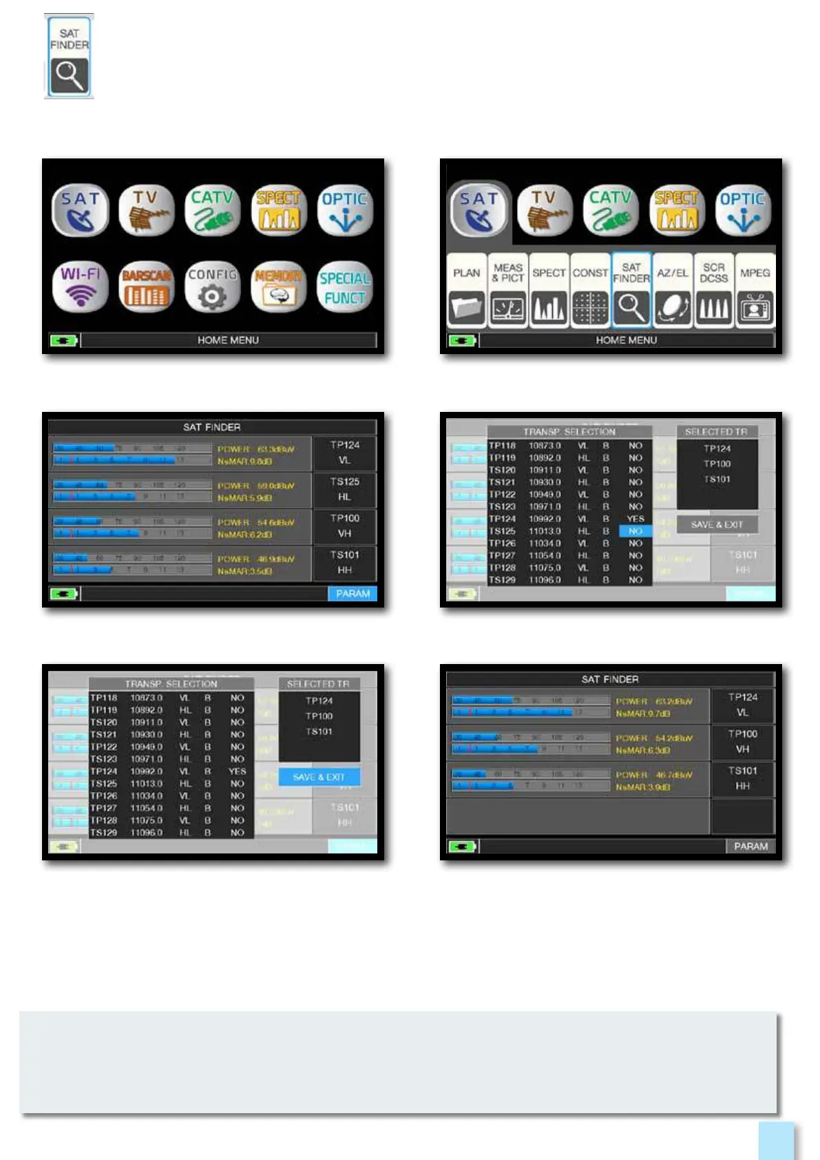 The SAT FINDER function allow you to check the quality of 4 transponders simultaneity