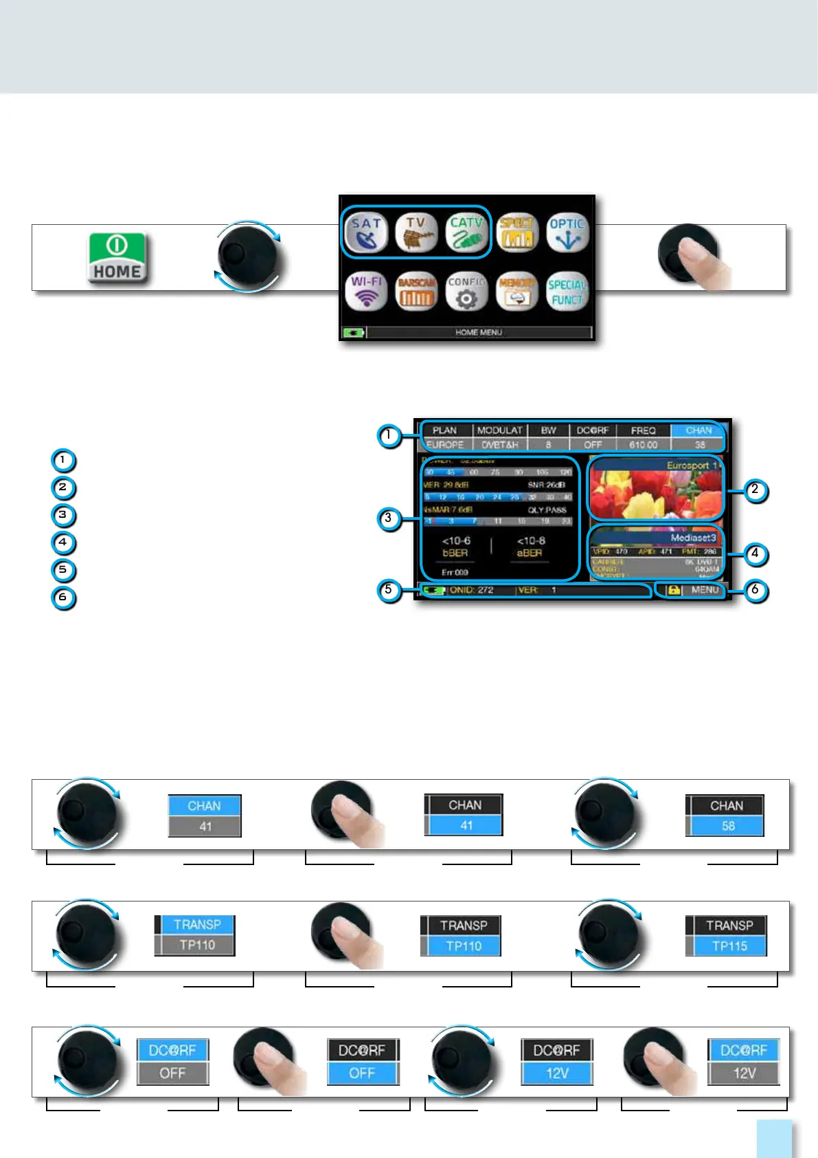 ‘TV’ or ‘CATV’ icons and press the wheel to select the measurement mode required.