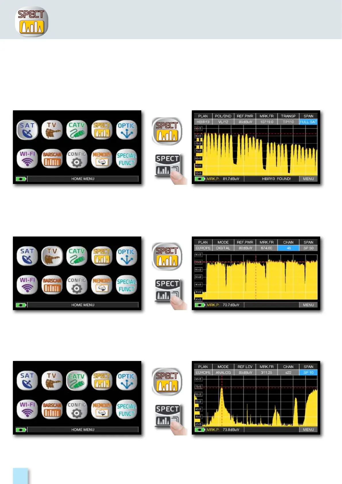the Spectrum Analyzer by touching the “SPECT” icon from the “HOME” menu