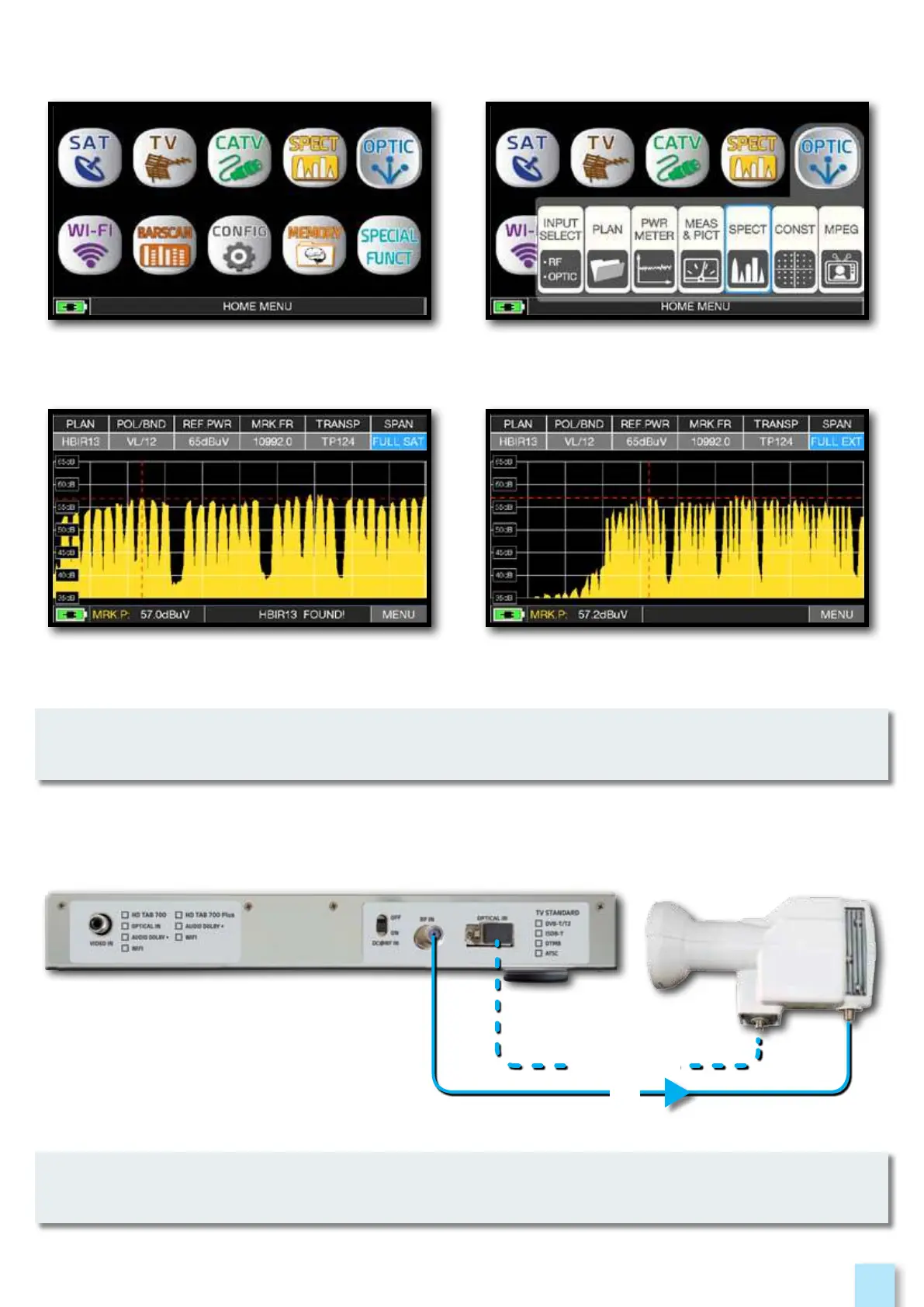 In OPTIC mode it is possible to analyze the spectrum and measure only vertical/low