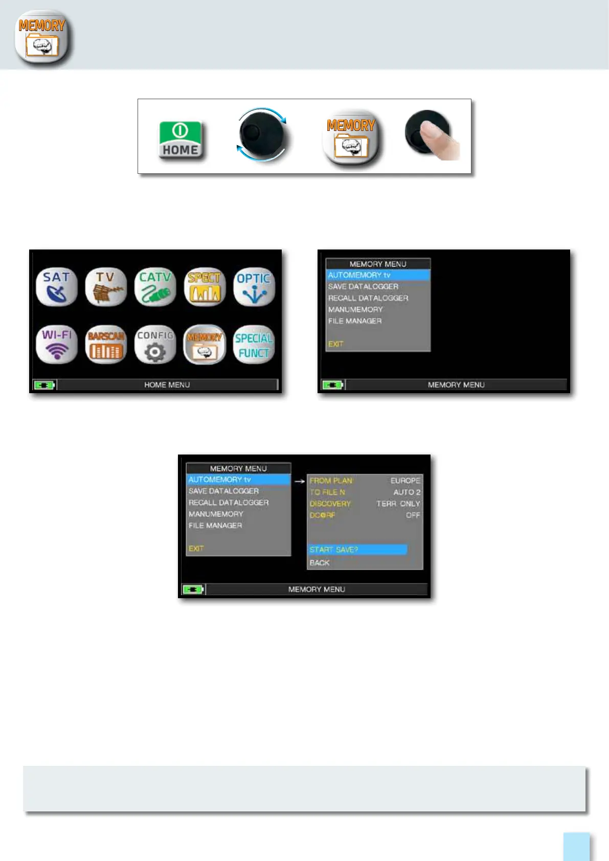 Touch “START SAVE” to create a new channel plan and to activate the search.