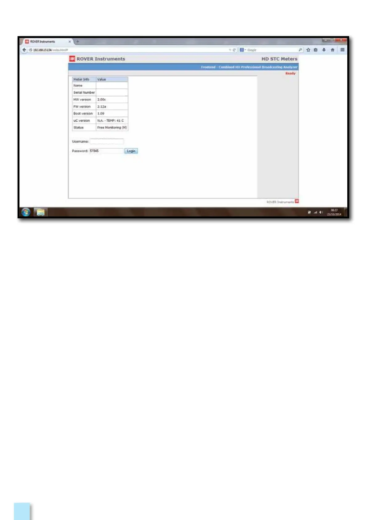 4. Insert in the “PASSWORD” field the Instrument Serial Number, Example: 51945,