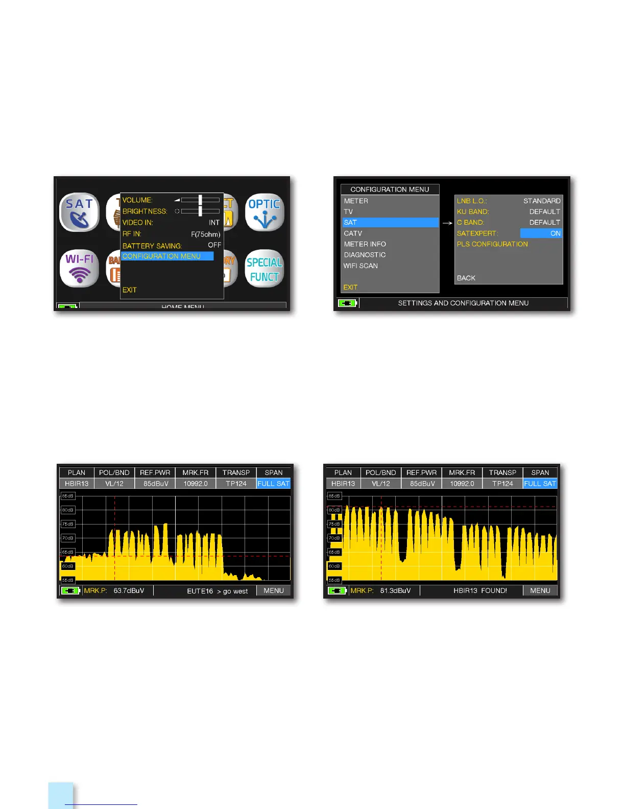 The SATEXPERT SW function (guided satellite tracking function), is a valuable aid for a fast