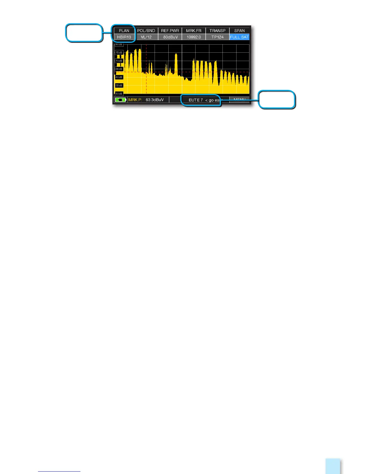 EUTE7 < G0 EAST (move the satellite dish EAST).
