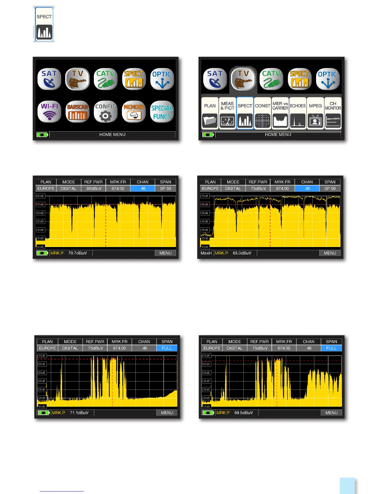TV spectrum SPAN 50 MHz Press again te spectrum key to activate the