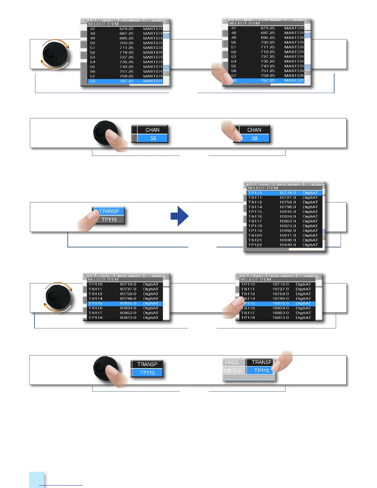 Example of SATELLITE transponder selection (TP/TS):
