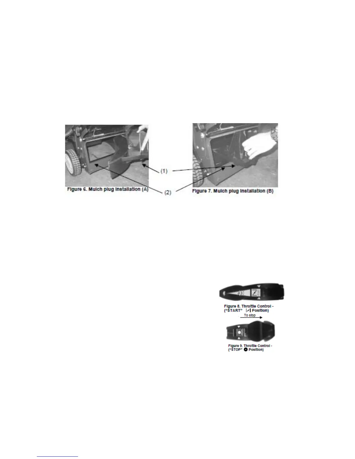 chute (2) then lower the mulch plug until it sits down flat onto the top of the rear