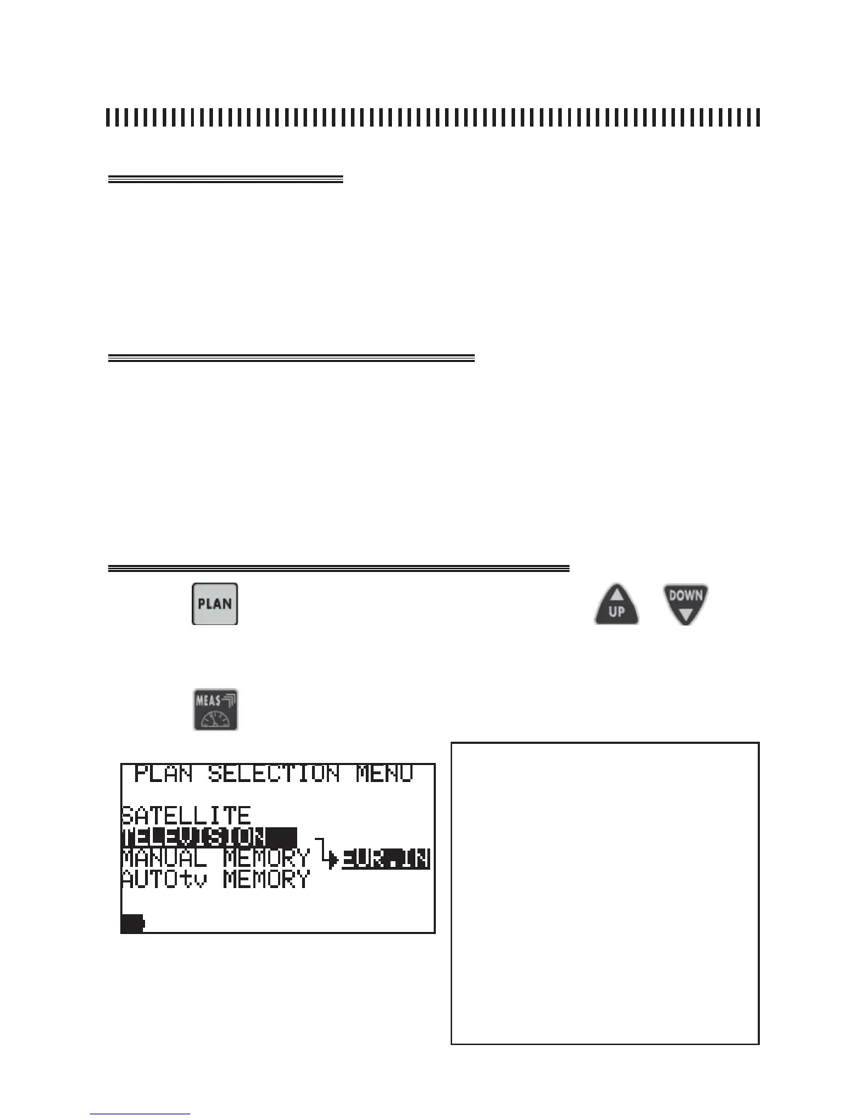 • Select the required Memory Plan using the UP [7] and DOWN [9] keys,