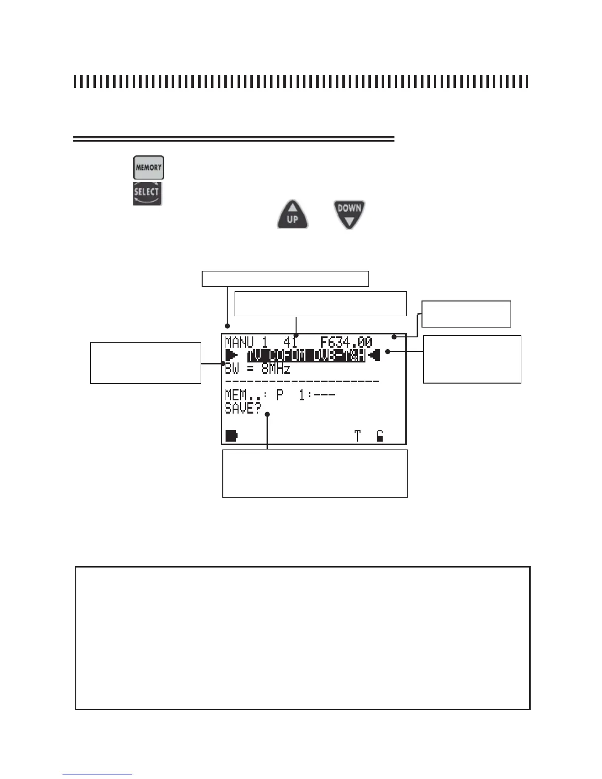 • If a manual tuning is performed in any MEAS menu (See par. 3.0 and 4.0) all these