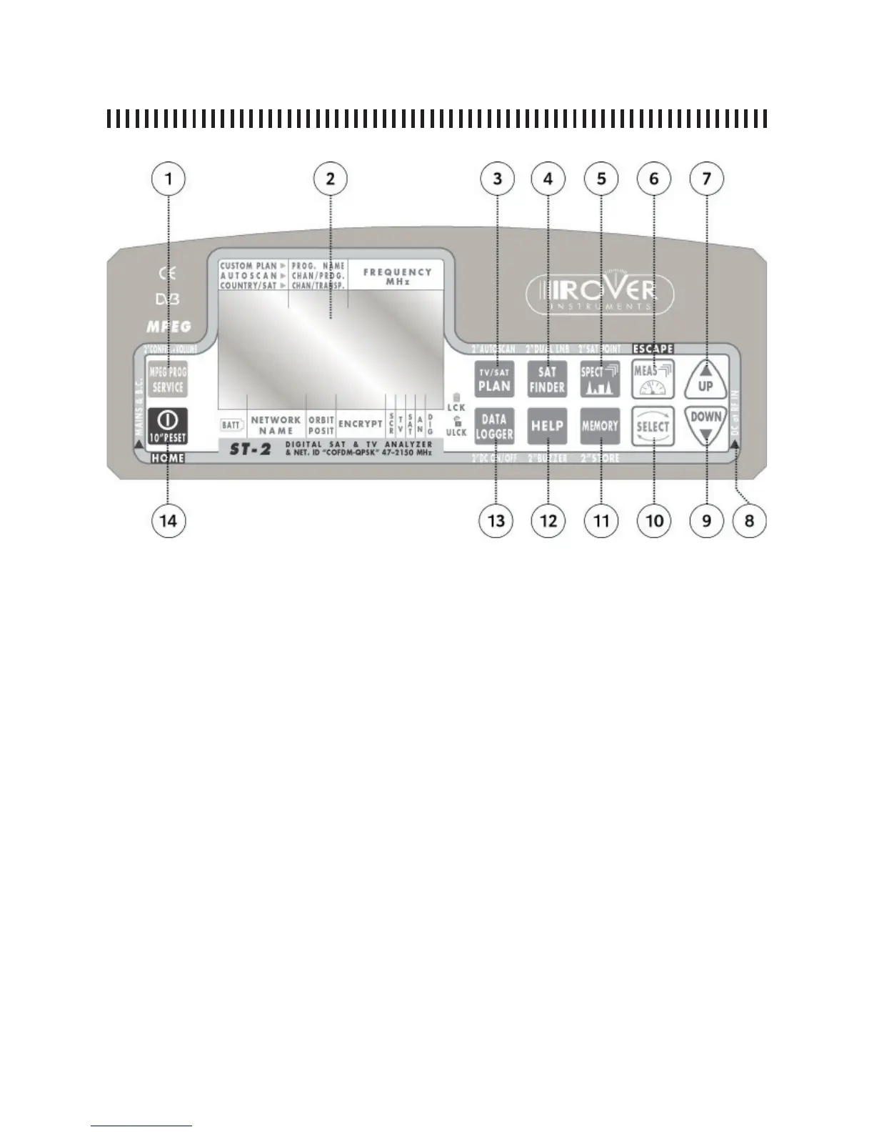 13 DATA LOGGER (press for 2 seconds to turn ON/OFF the power supply to the RF input)